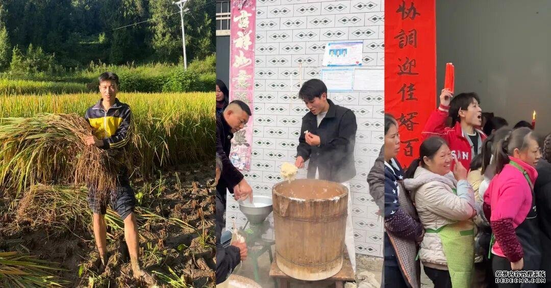 柳同学在家乡收稻谷、打糍粑等。图/哔咔漫画网页版在线受访者提供。