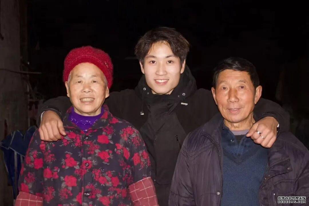柳同学与爷爷奶奶合影。图/受访者提供。